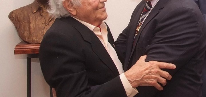 El escultor Santiago de Santiago impone al director de ABC, D. Beito Rubido el Torsón de Oro